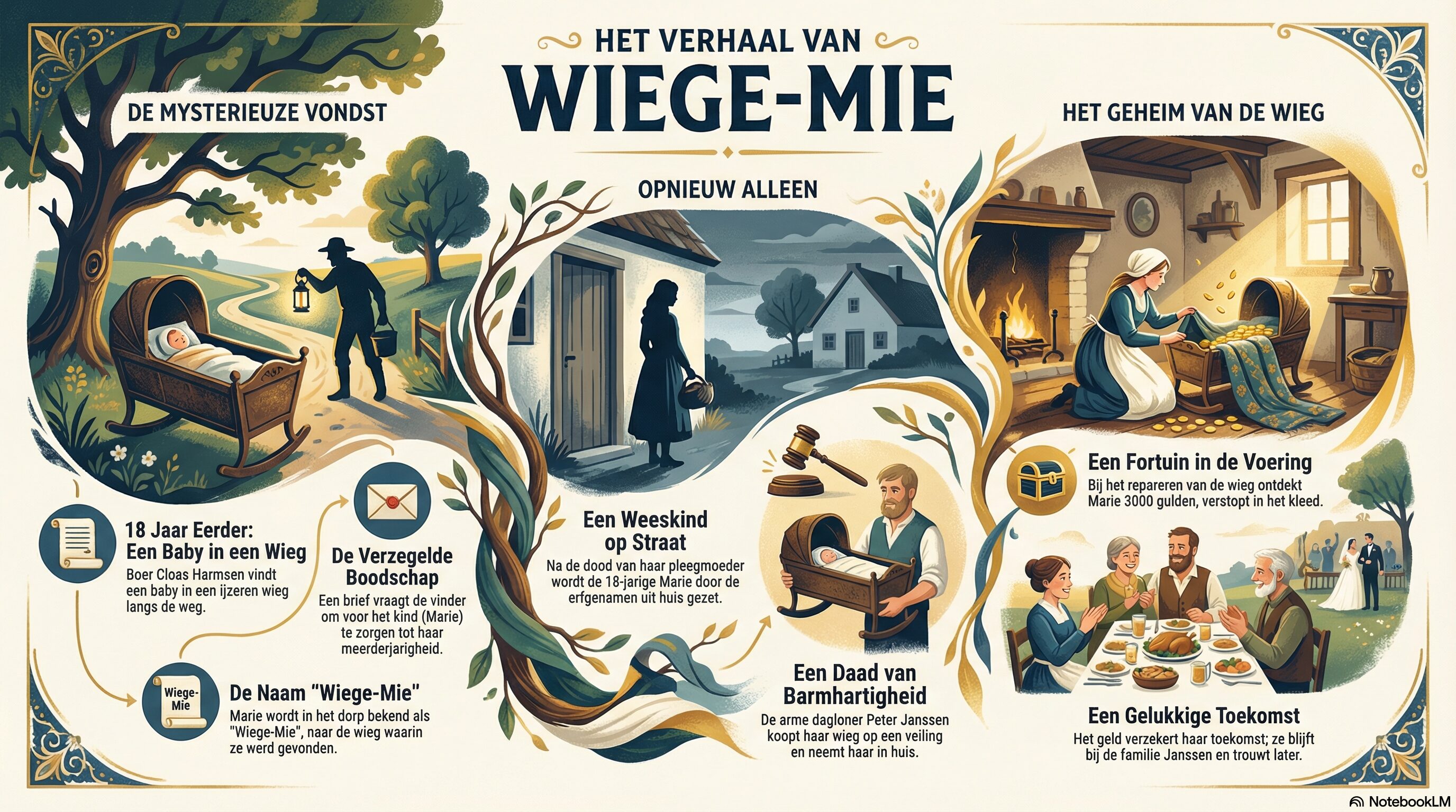 WIEGE-MIE. In: De Geldersche Volksalmanak jrg. 1853. Arnhem :Is. An. Nijhoff & Zn., 1853. p. 21 e.v. Download de tekst van Wiege-Mie